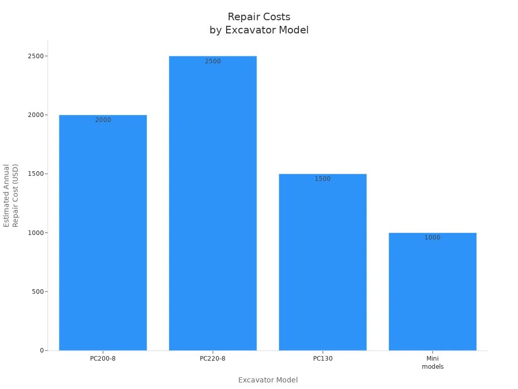 Hydraulic repairs usually cost between $1,000 and $3,000. The price depends on which part is broken and how much labor is needed. Older machines or ones not cared for may cost more to fix. These hydraulic problems can make the Komatsu PC200 used price go down. Buyers worry about more repairs in the future.